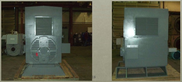 The motor was redesigned from 4160 Volts to 6600 volts and a 13" high transition steel base-plate was adapted in order to match the exact mounting dimensions of an Electric Machinery frame 4246SE. All the shaft and mounting dimensions were matched to accomplish a drop-in replacement.